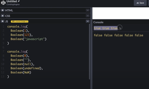 Boolean (' ') // true 사이에 공백이 들어가있으면 값이 달라짐!