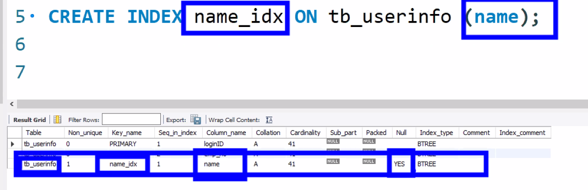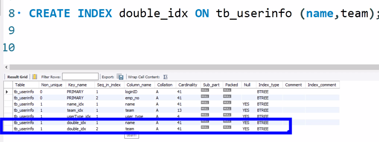 두번째는 이미 만들어진 테이블이 있고 그 안에 데이터들이 다 들어가 있을 때 인덱스를 만들 수 있다.