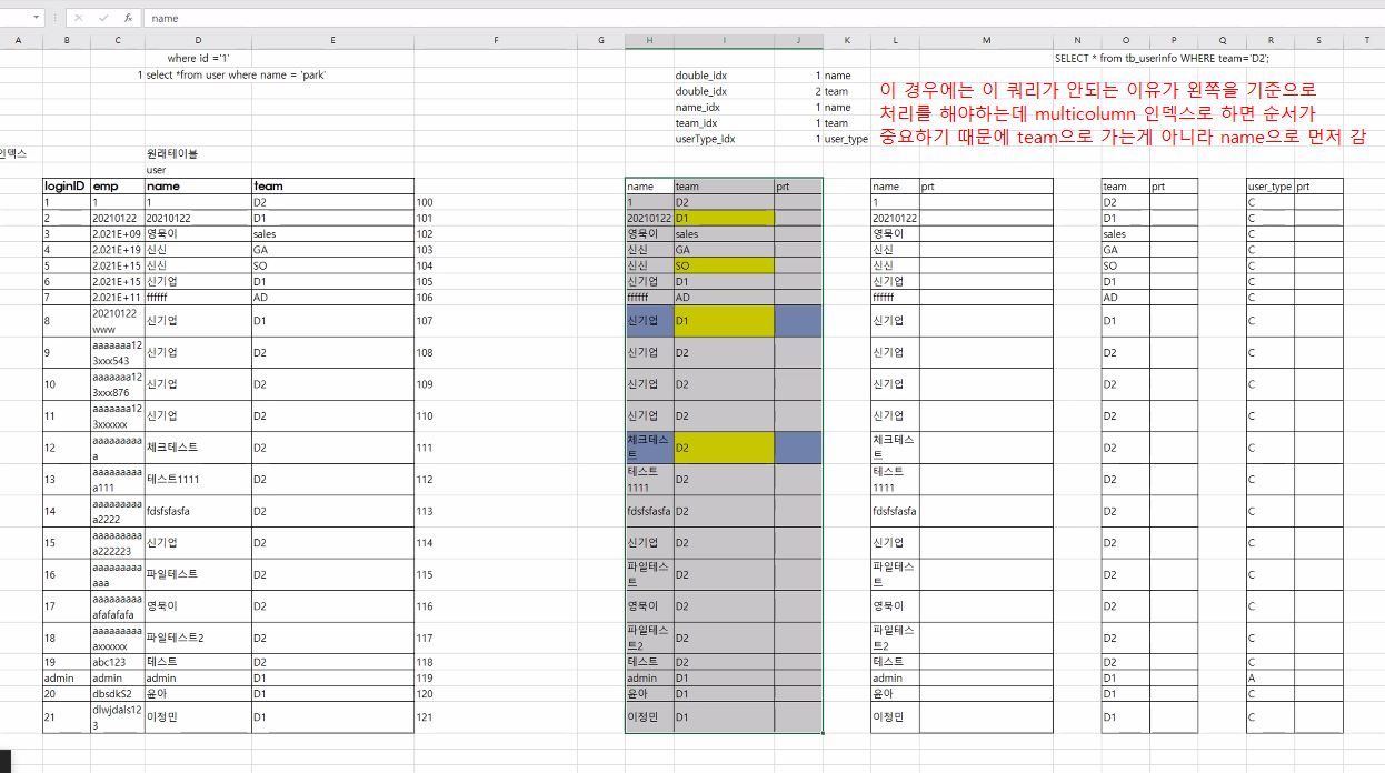 - 멀티컬럼인덱스(Muti-column Index, 다중컬럼인덱스)를 통해 만들 수 있다.