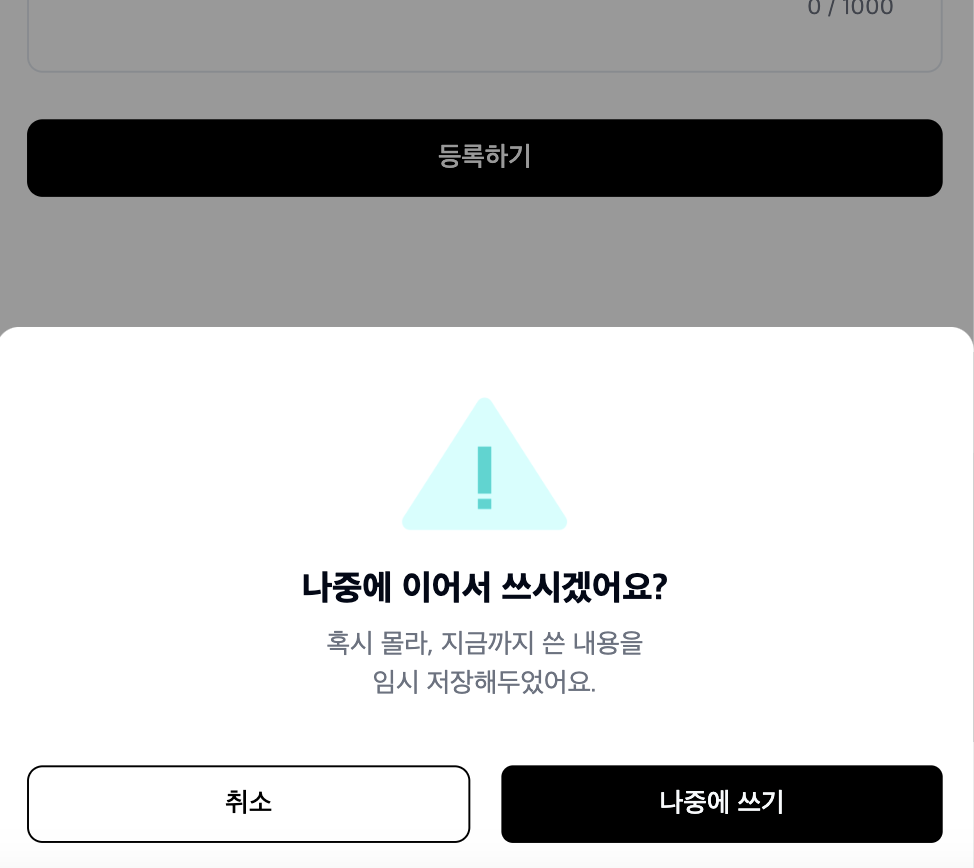 textcontent={`혹시 몰라, 지금까지 쓴 내용을 \n 임시 저장해두었어요.`}