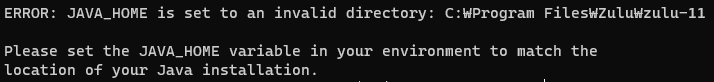 내pc - 속성 - 환경변수 - JAVA_HOME 환경 변수로 수정이 필요함