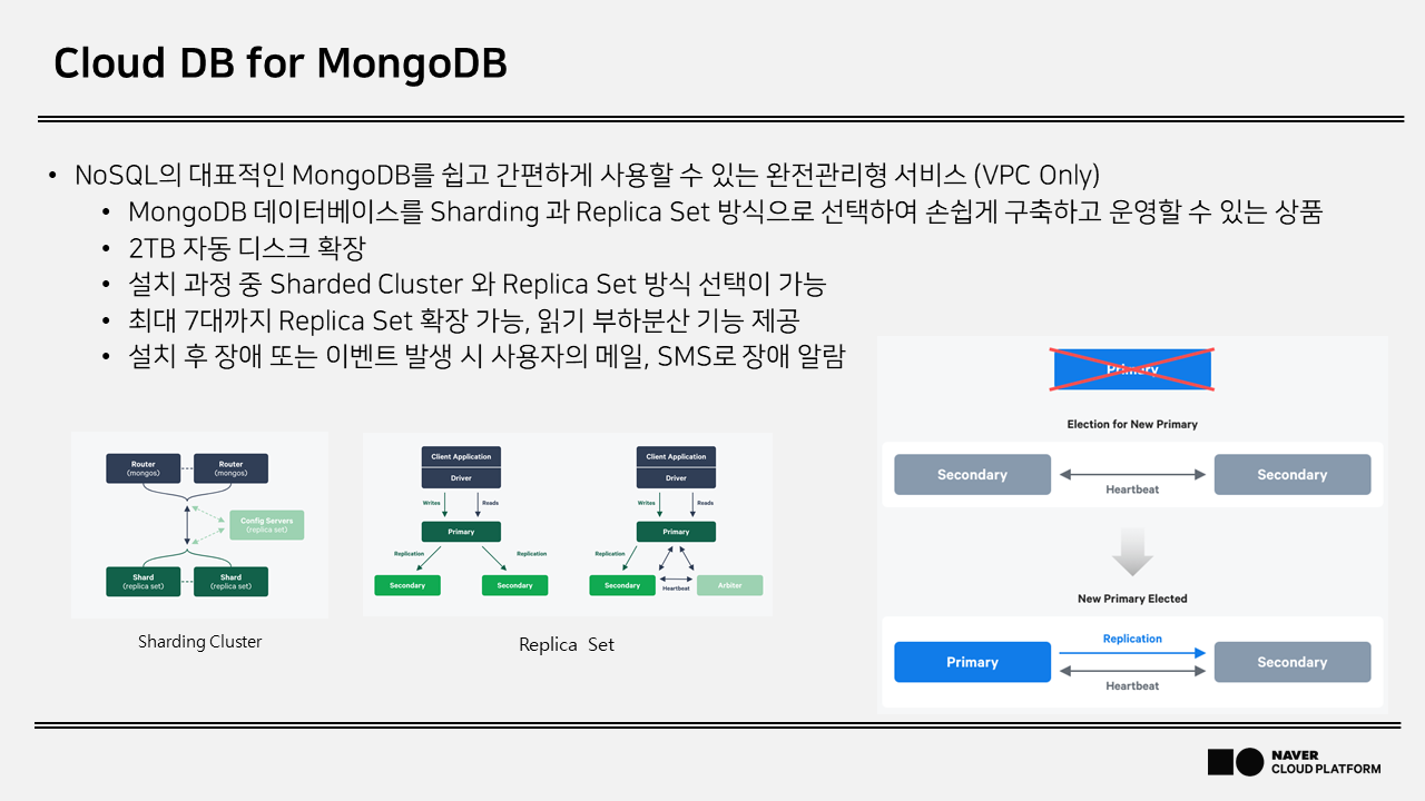 자동 Fail-over을 지원하며 최대 5대까지 복제 Slave( read only ) 확장 가능