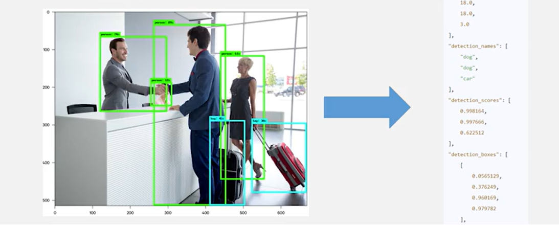 객체를 탐지하여 객체의 이름, 바운딩 박스, 탐지 정확률을 제공