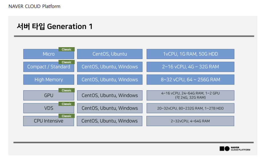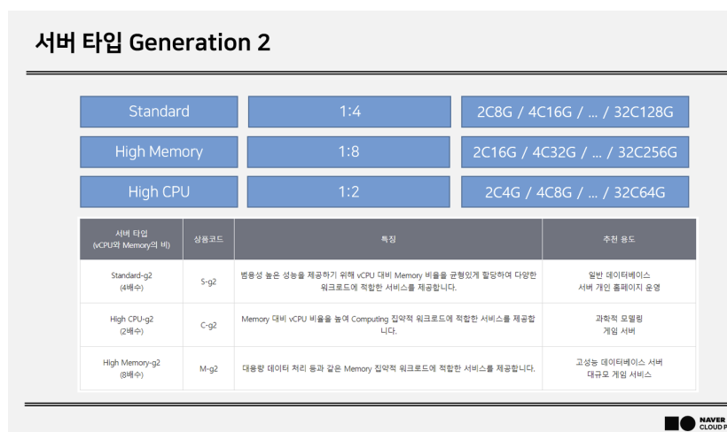 - G2의 경우 vCPU와 RAM의 비율에 따라 3가지 서버 타입 제공