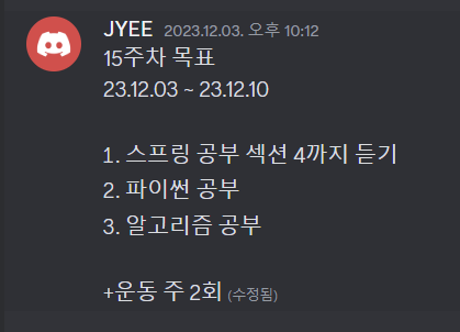 [온라인스터디 15주차] 12.03 ~ 12.10 공부 기록 및 후기