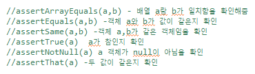 JUnit에서 가장 많이 이용되는 단정(assert)메서드